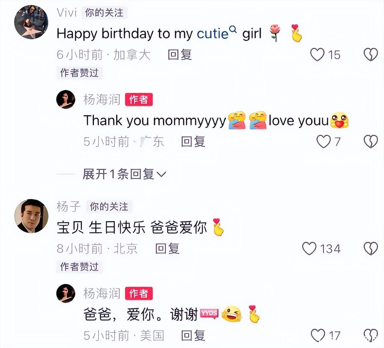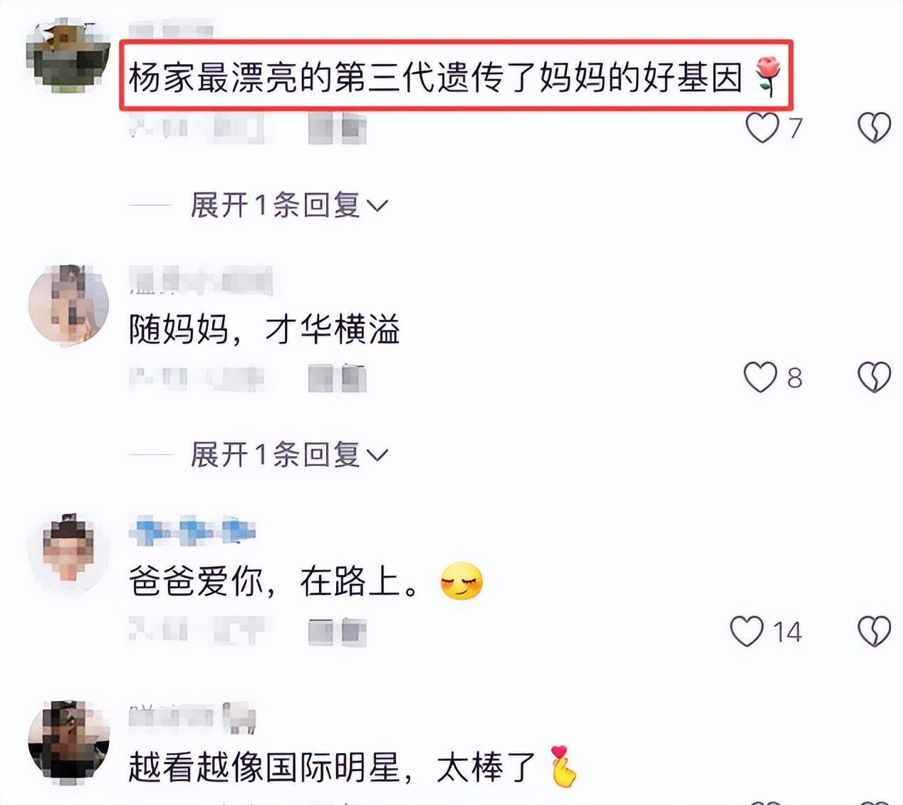 而翻阅杨海润应答平台,时时她发动态,杨子皆会跑到男儿动态下表白男儿“我爱你”,以此标明即便有了新家庭,但对男儿的爱与关注并不会减少。